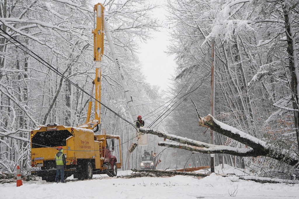 Rice said most of the storm damage to power lines occurred in southern Maine and in coastal areas. More than 520 crews were in the field Thursday. Despite the effort, the heavy snow on tree limbs was causing new outages, and travel conditions slowed restoration progress. Rice predicted that some customers would remain without power into Friday.