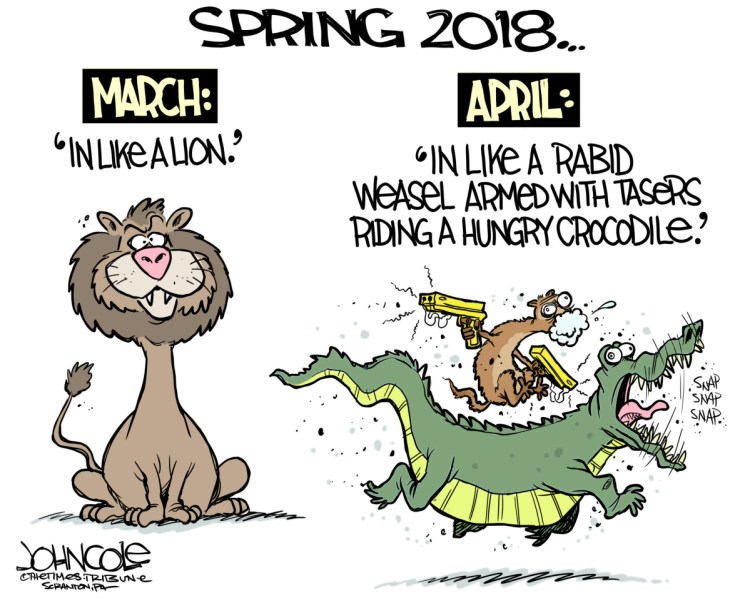 Opinion Today’s editorial cartoon April 10, 2018 Posted April 10, 2018 Font size + Gift article You are able to gift 5 more articles this month.Anyone can access the link you share with no account required. Learn more. Email Copy Link Email address Send! Article link sent! An error has occurred. Please try again. With a Kennebec Journal and Morning Sentinel subscription, you can gift 5 articles each month.It looks like you do not have any active subscriptions. To get one, go to the subscriptions page. Subscribe Today With a Kennebec Journal and Morning Sentinel subscription, you can gift 5 articles each month. Subscribe Today Sign In Loading.... Share Facebook Reddit Linkedin Email Copy Link Print Copy the Story Link Send questions/comments to the editors. filed under: cartoon Related Stories Latest Articles
