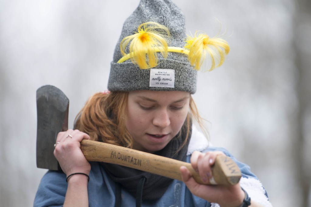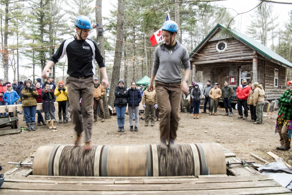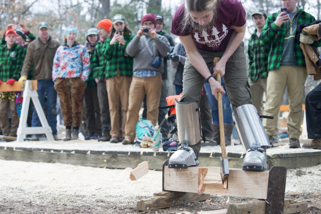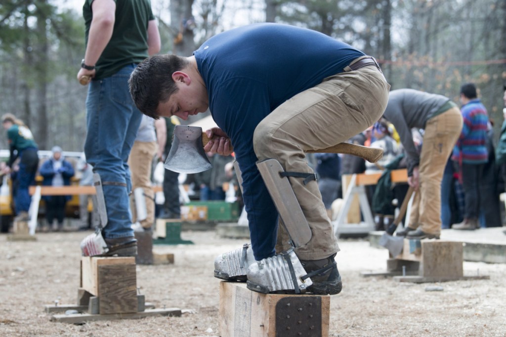 WATERVILLE — A day after springlike temperatures blanketed the region, the ground at the Woodsmen field at Colby College was a slushy mix of mud and the few remnant snow piles of the winter on Saturday. But despite the sloppy conditions, the field, across the street from Jonson Pond is abuzz with activity, as students from around New England gathered to practice the disappearing arts for which the field is named.