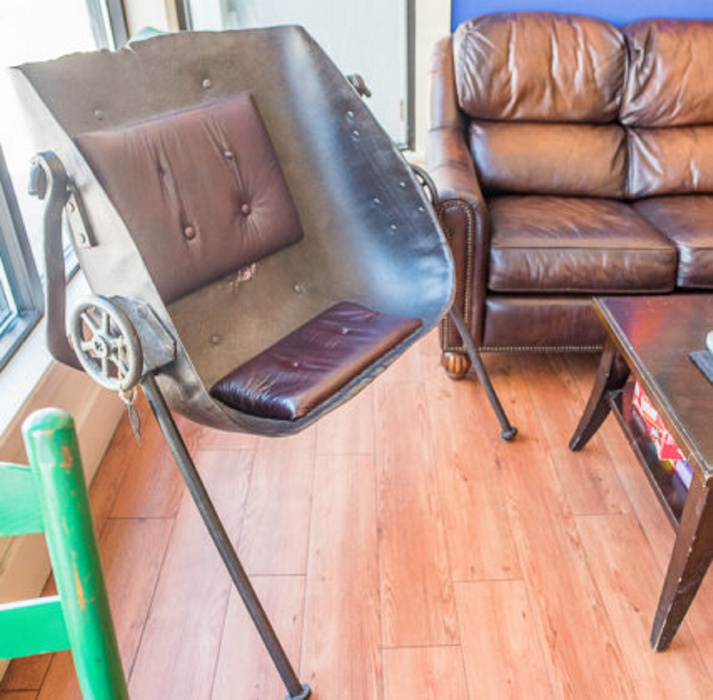 “We put upholstery on the inside and we used vintage circus tent stakes for the legs, and we have valve wheels on the sides,” said Corey. “It looks like something out of ‘Nightmare Before Christmas.’ Tim Burton would definitely adore that chair.”