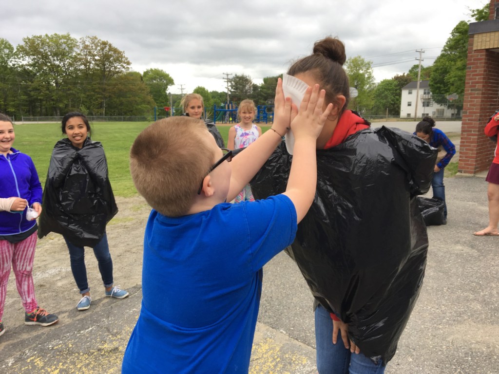 Parker Stevens throws a cream pie into the face of his “big sister,” Emily Larsen, during the last program of the year for the ShineOnCass group in 2017.