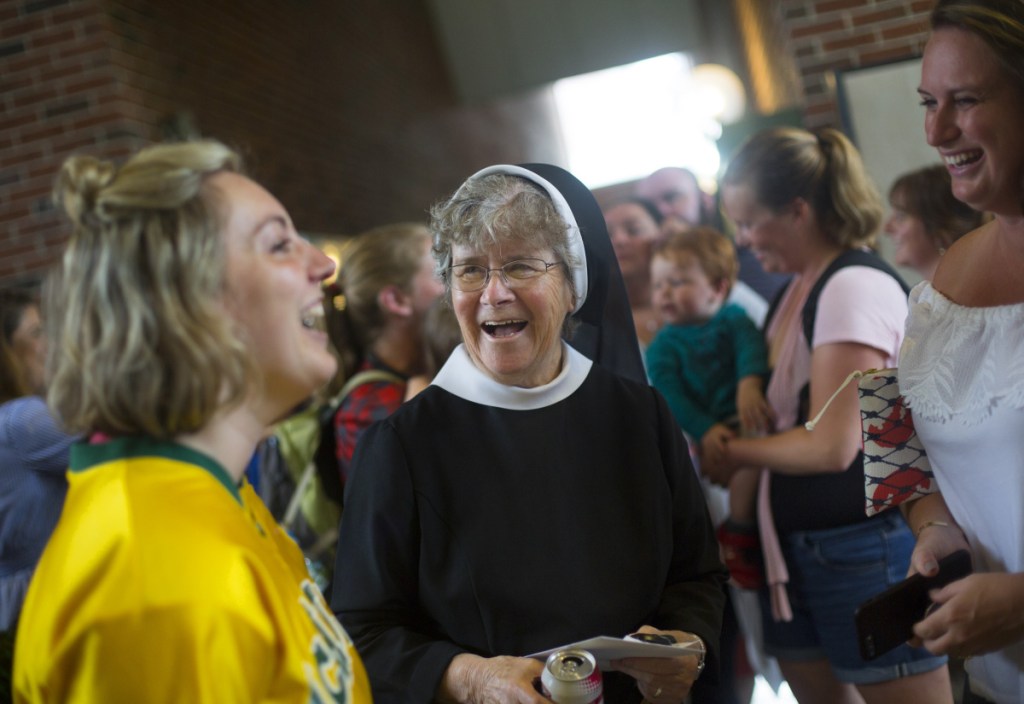 Sister Edward Mary Kelleher, a former principal at the school for 30 years, was front and center, as she was in all the basketball games. People stood in line to have their photo taken with her, waited just to have one more conversation with her.
