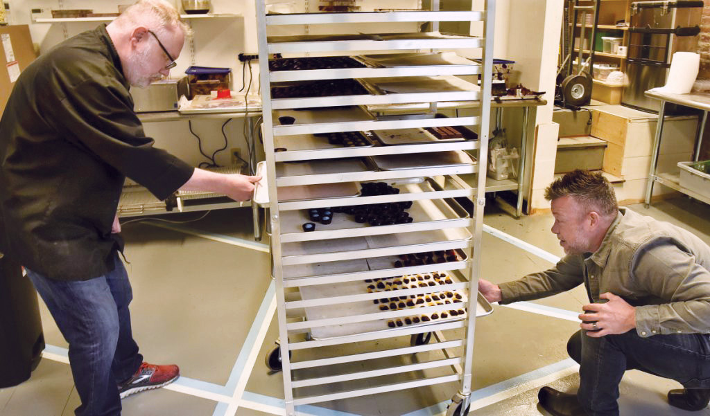 WATERVILLE — Making chocolate was just a hobby for Mark Simpson and Nate Towne when they were approached by a friend about selling some of their brightly colored bonbons at an Ellsworth craft fair in 2014.