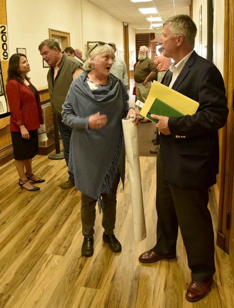 “I am thinking about my people, my environment and what’s important to us,” Sheryl Harth, of Jackman, told CMP’s John Carroll outside the assembly room after Carroll had delivered a project update to county commissioners. “We got our independence from Massachusetts in 1820 — we are not beholding to the Commonwealth of Massachusetts. I know that you are just doing your job, but so am I.”