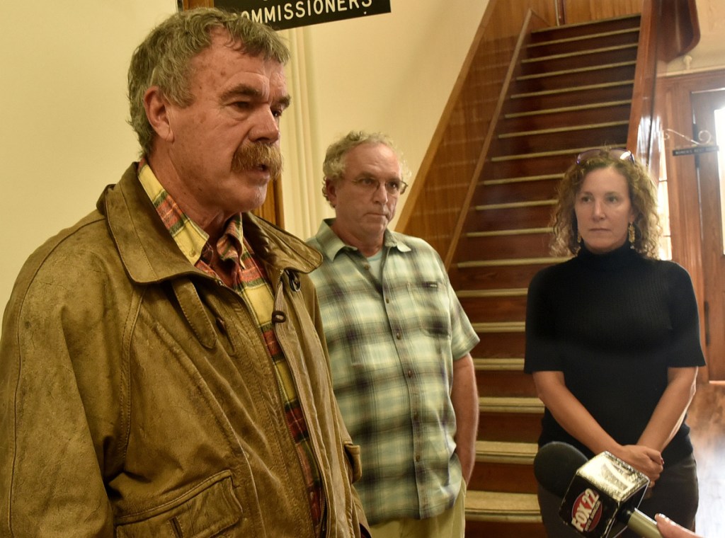 Merette, along with John Willard, owner of The Birches Resort on Moosehead Lake; Pete Dostie, owner of Hawk’s Nest Lodge in West Forks; and Clifford Stevens, owner of Lake Moxie Camps and Moxie Outdoor Adventures, assembled outside the conference room before Carroll’s address to county commissioners to say the transmission line is going to cripple their businesses.