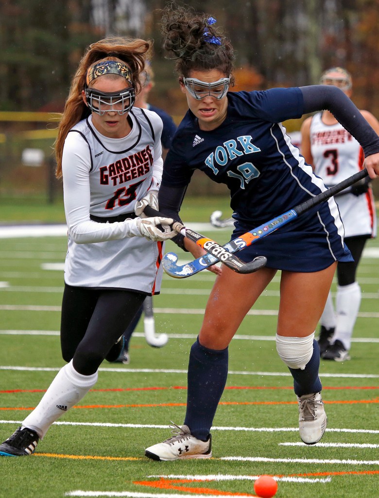 York, playing in its sixth consecutive state game, finished 13-4-1. The Wildcats controlled much of the first half and led 1-0 on a rebound goal by Bailey Oliver with 14:14 left in the first half. But Gardiner got a goal from Jazmin Clary with 0.5 seconds left in the first half, scoring off a scrum on a penalty corner, to get back in. “Oh my God, it felt so good to go into the half tied,” said Gardiner goalie Lindsey Bell, who made 11 saves. “If we hadn’t scored it would have been much harder for us.”