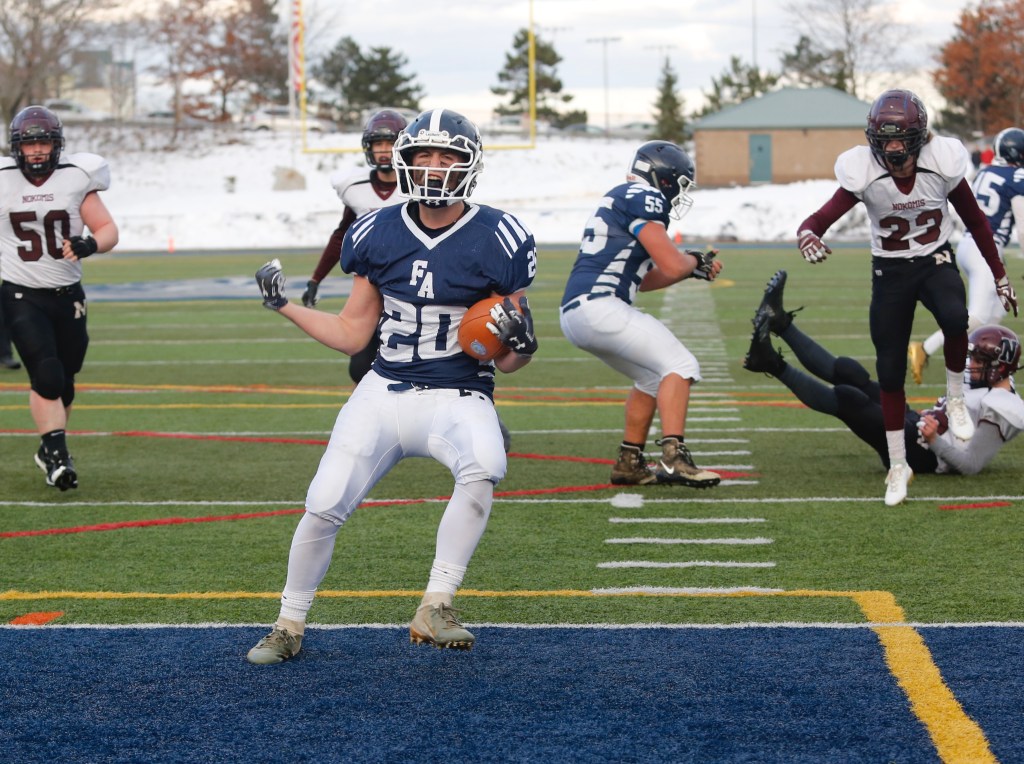 Tyler Pelletier made that play. With 4:19 remaining, Pelletier fielded a punt, saw an opening to the right sideline and raced 68 yards into the end zone. His punt return gave Nokomis a 13-12 victory over Fryeburg Academy in the Class C football state championship game Saturday afternoon at Fitzpatrick Stadium.