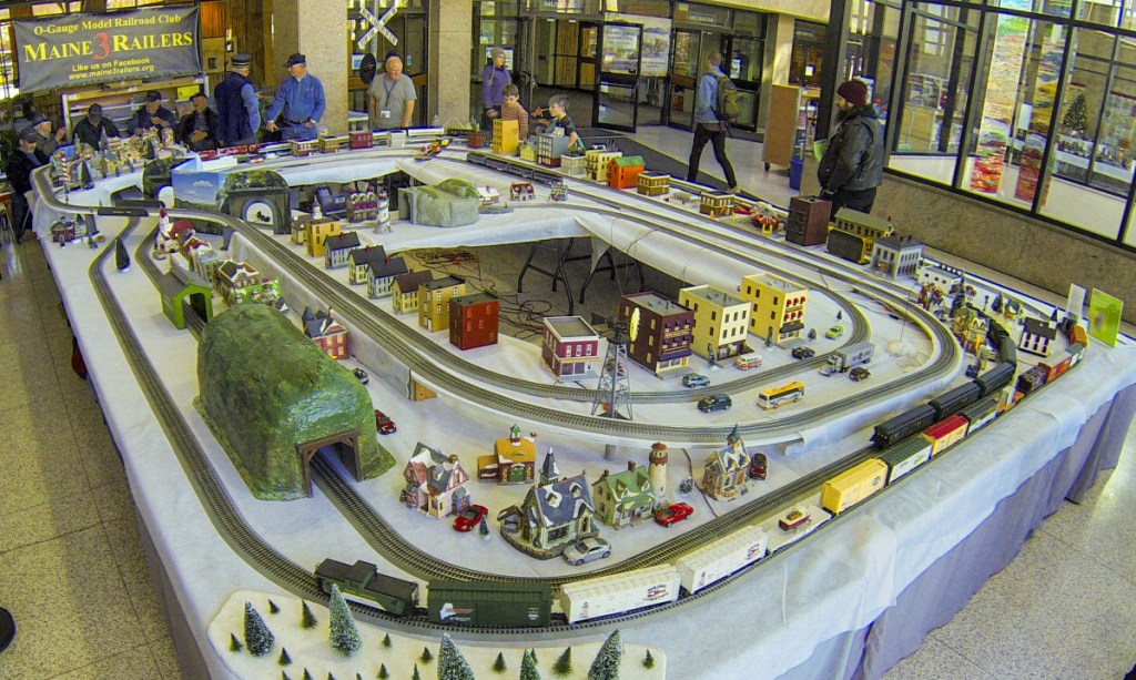 The Maine State Museum kicked off its annual model train event Friday in the atrium of the Cultural Building beside the State House in Augusta. The event features model trains in a variety of displays complete with accessories and seasonal scenery, and continues from 10 a.m. to 3 p.m. Saturday.