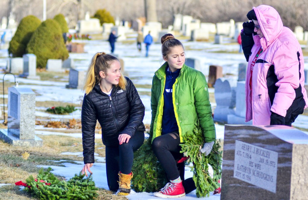 Volunteers placed 375 wreaths on veterans’ graves in Oak Grove Cemetery in Gardiner on Saturday morning as part of Wreaths Across America events nationwide.