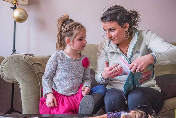 Ashley Morissette and her daughter, Payton, look through Payton’s journal at their home in Rumford. Morissette has regained custody of Payton since getting clean.