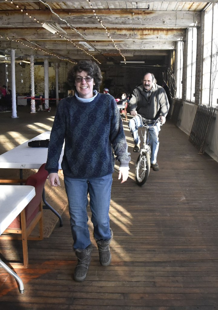 VASSALBORO — Children and adults were wheeling around the mill Sunday inside the sprawling Olde Mill Place, having fun and helping to raise money to fix up the old place.