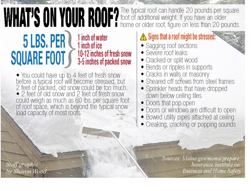 This is the scenario Bill Smith, a Waterville-based building contractor, describes to explain why people should get their roofs shoveled regularly and, in some cases, inspected by a professional to make sure they is safe.