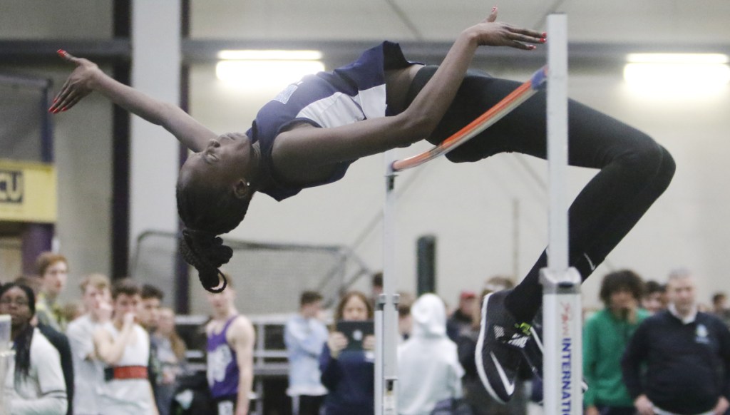 Westbrook senior Nyagoa Bayak cleared 6 feet in the high jump – and made the elusive height look like a forgone conclusion. She cleared her first two heights (5-6 and 5-9) on her first attempts and then soared over 6-0 on her second attempt as she smashed her own state record, which was 5-8 before Monday’s meet.