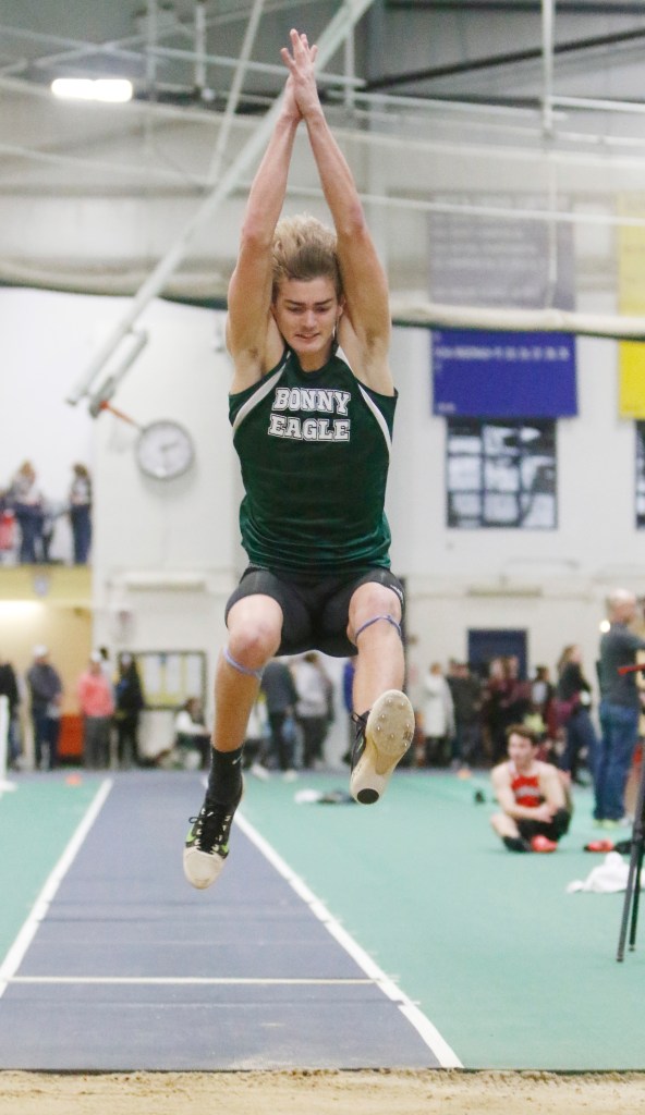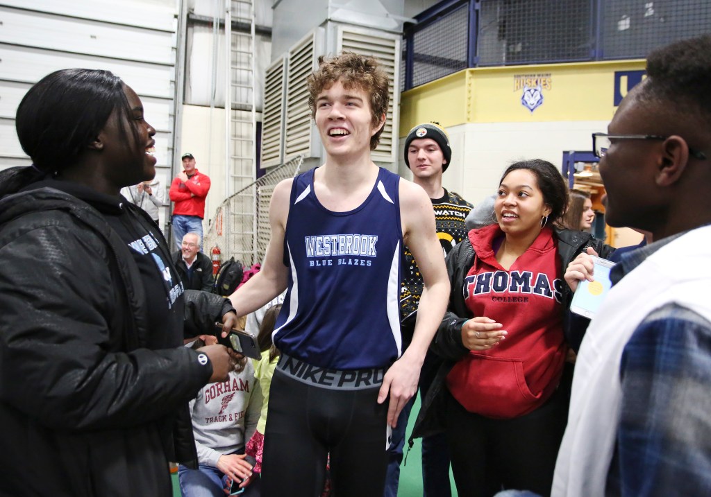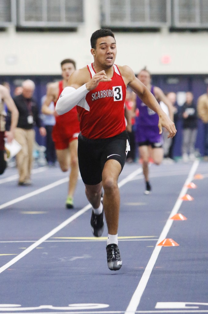 Scarborough junior Jarett Flaker broke his own state record of 6.50 in the 55 with a time of 6.46. He also won the 200 (22.65) and 400 (50.20).
