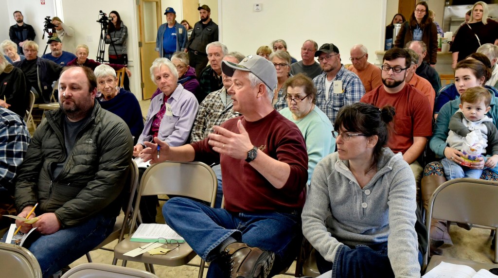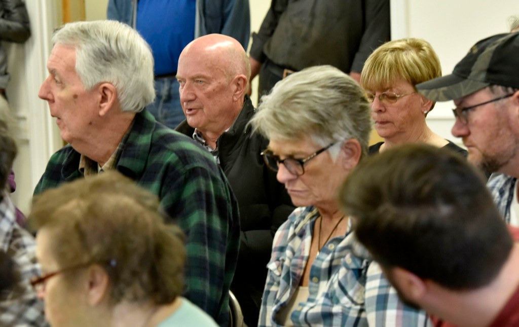 Second Selectman Bob Carter, speaking in the third person, said: “Bob Carter doesn’t want anything to do with it” after he was nominated for re-election. Former town firefighter Shawn Bristol, who led the mass resignation of firemen at a Feb. 20 Select Board meeting after the officials refused to reinstate former deputy chief George Russell and allocate $85,000 for equipment, ultimately lost to Joshua Ard by three votes. When it was announced that Ard received 43 votes and Bristol 41. After the decisions many said “Aww” and “Yes.”