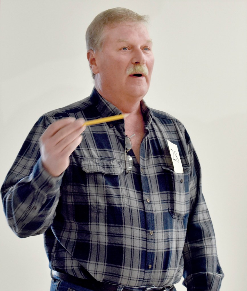 “I’ve lived here in town for 30 years, and this is the second time the fire department has quit,” he said. “This fire — I don’t know what they call themselves, fire company, fire whatever they are, club — they’re not representing the citizens of this town when they all up and quit, all 27 of them. I think that the selectmen need to have some input. … If the citizens are going to vote to spend $30,000 or $40,000 to support the fire department, then the citizens need to have more say through our representation on the select board.”