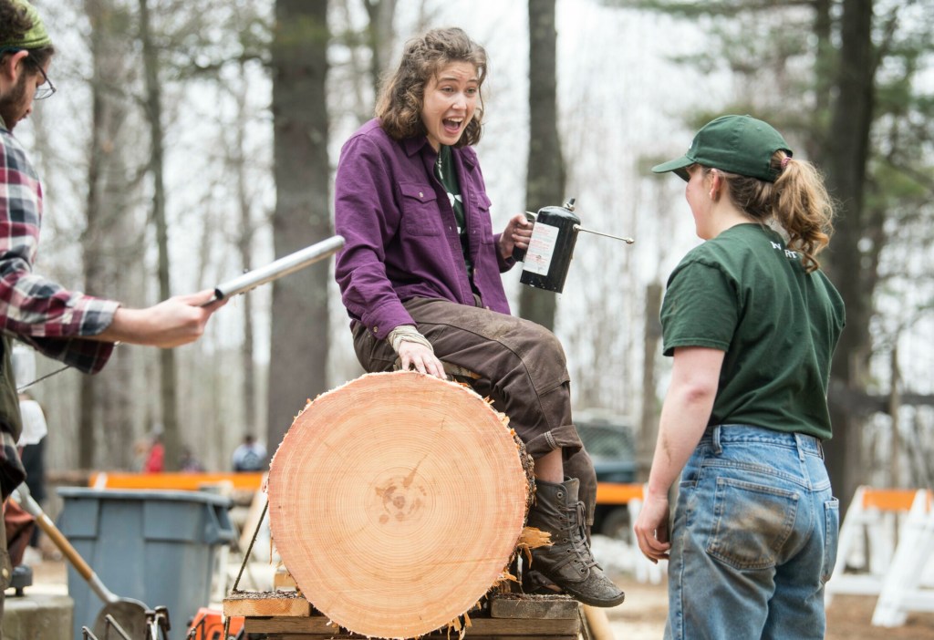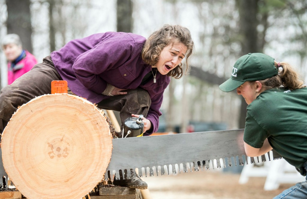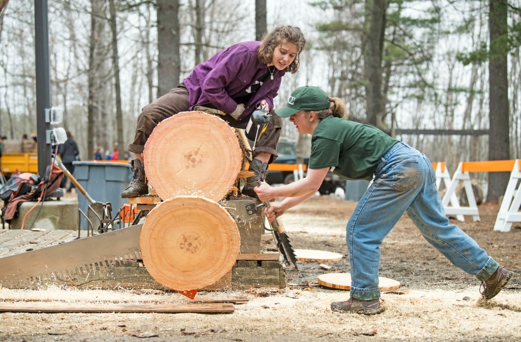 The earliest collegiate competition of which Smith has found a record took place in 1947 at Dartmouth College. Though technology has advanced since that time and new wood tools have been introduced, Smith said, the woodsmen’s competitive events have largely remained unchanged. He once competed on the Unity College team himself.