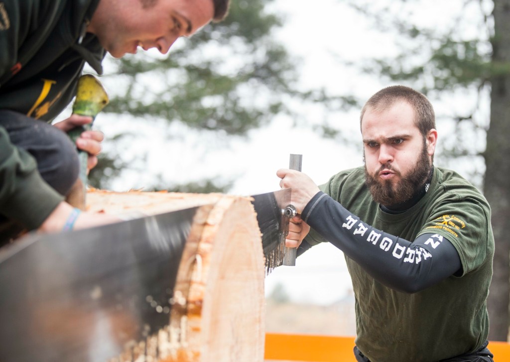Events ranged from dry land log birling to team crosscut. The former, which often is held in the water during warmer seasons, involves players attempting to stay on top of a large spinning log. The latter is a group effort in which three pairs take turns using a 5-foot saw to cut discs off a log in the shortest possible time. Some are solitary events, some are doubles and others require six-person teams.