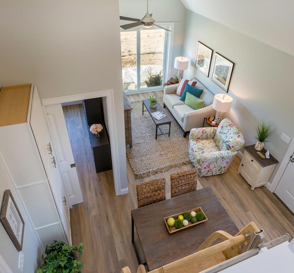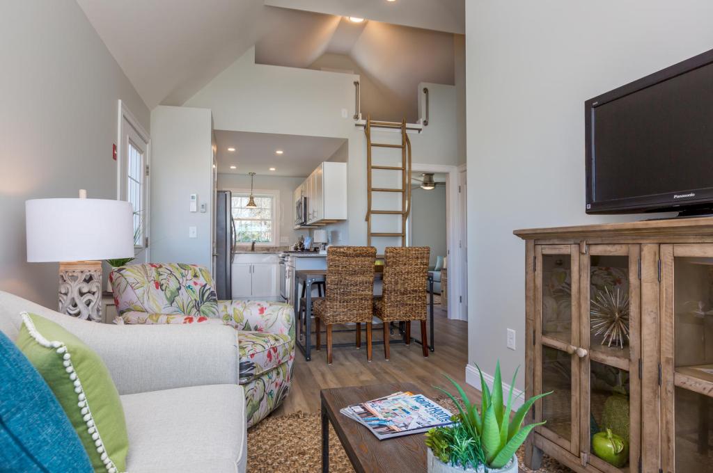 They range from 440 to 740 square feet. That’s the size of the completed, two-bedroom luxury model house, which – light and bright, with cathedral ceilings, an open-concept floor plan, and a granite-and-stainless kitchen – feels larger. It has a cool storage loft, too. The model cottage is offered at $215,000.