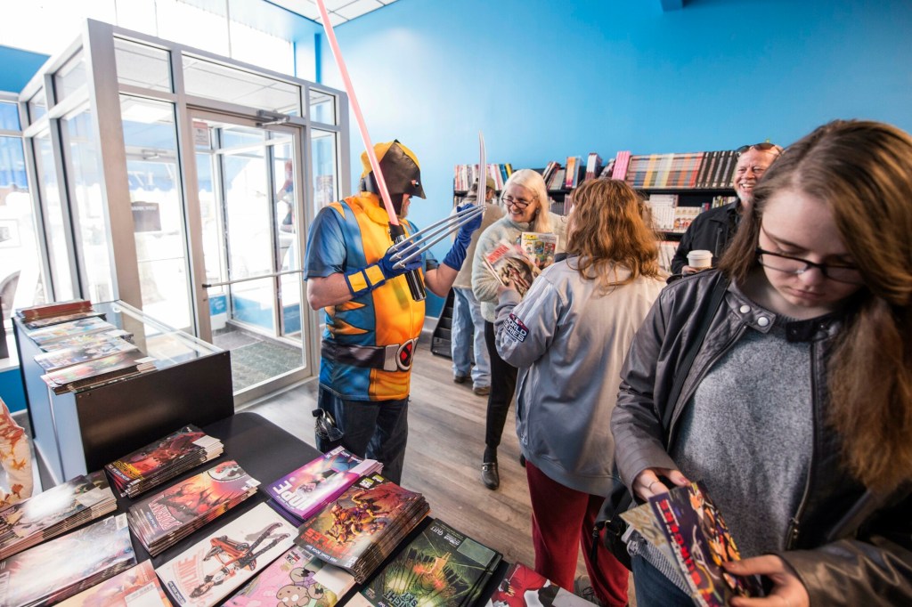 He said the free comic books on Saturday were a good way to showcase his shop and bring people into the world of comics and superheroes.