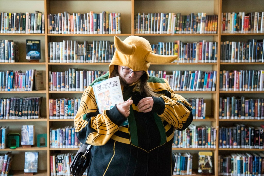 “Loki’s a god in Norse mythology and his brother Thor is a superhero that fights with a bunch of other superheroes in Marvel comic books as The Avengers,” Bradstreet said, all decked out in a hooded Loki costume. “These days The Avengers are really popular because of the Avengers movies. ‘Avengers: Endgame’ opened just a week ago.”