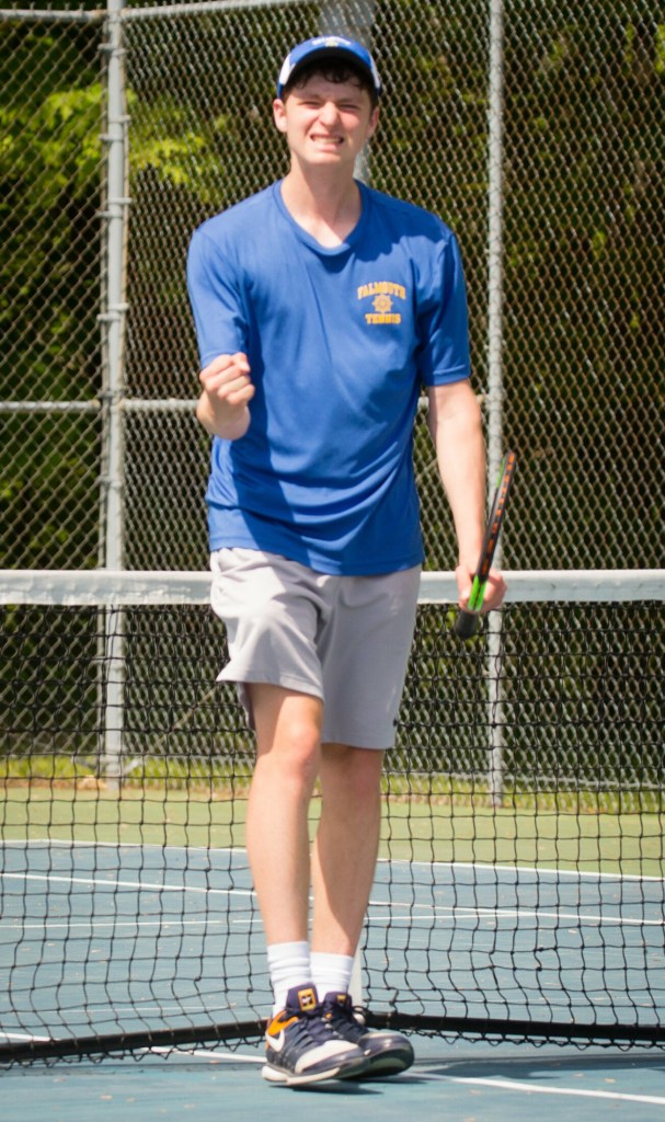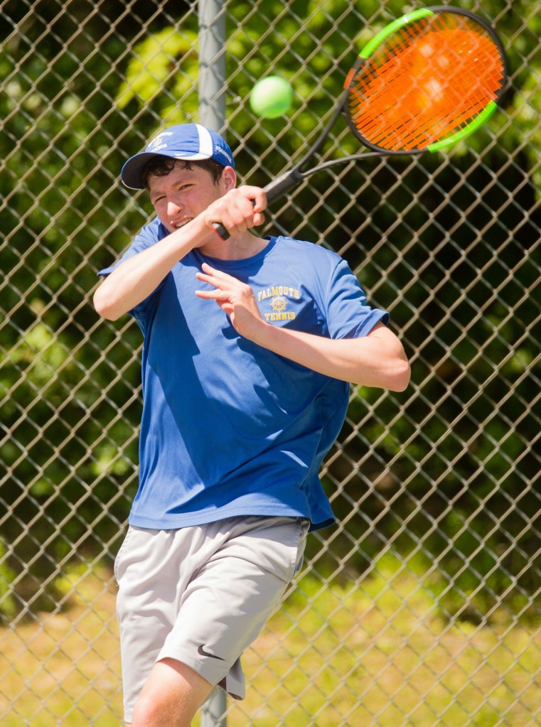 Falmouth’s No. 2, Matthew Ray, won easily, 6-2, 6-2. No. 1 Nick Forester, who would play later, was heavily favored. That left it up to Calvin Spencer in the No. 3 singles for the Yachtsmen.