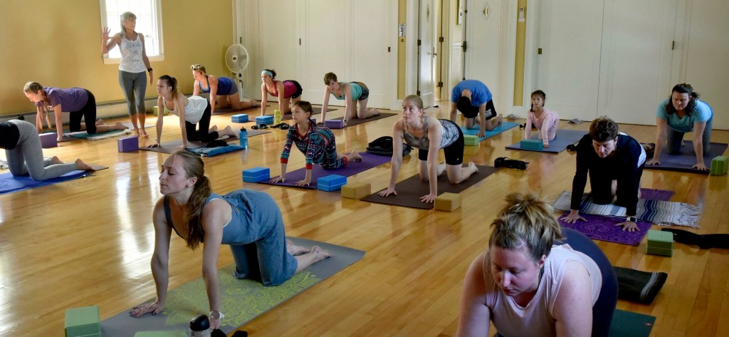 Ashley Pullen, who lives in Gray and has come to School Street Yoga a handful of times with her Waterville-based friend, Emily Wagner, said she enjoyed the class she attended Sunday.