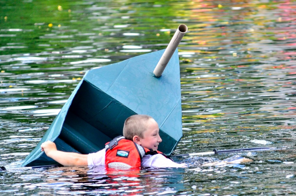 Birtwell and his uncle, Dennis Hutchinson, of Lewiston, had just received a first-place medal Saturday for their cardboard canoe staying afloat the longest. They also received a medal for their second-place landing at the dock near the Mill Pond dam.