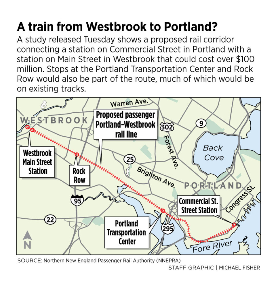 Establishing passenger rail service between Portland and Westbrook could reduce traffic congestion and move people faster than buses can, but doing so would not be cheap, according to a report released Tuesday.