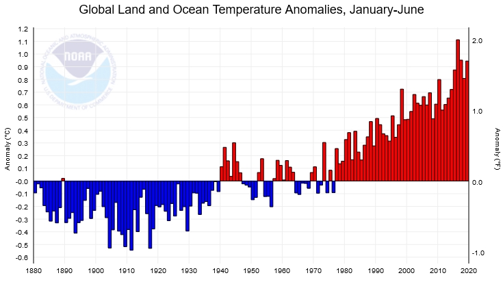 • Globally, June’s average land and ocean surface temperature was the warmest ever recorded for that month, according to NOAA. Nine of the 10 warmest Junes have occurred since 2010.