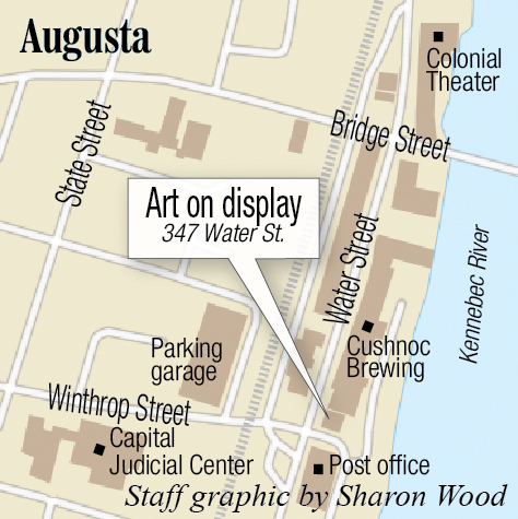 As for the two sets of storefront windows where Winslow and Jessen are displaying their work, he said he’d like to recruit a small market, like Boynton’s in Hallowell, to lease the space.