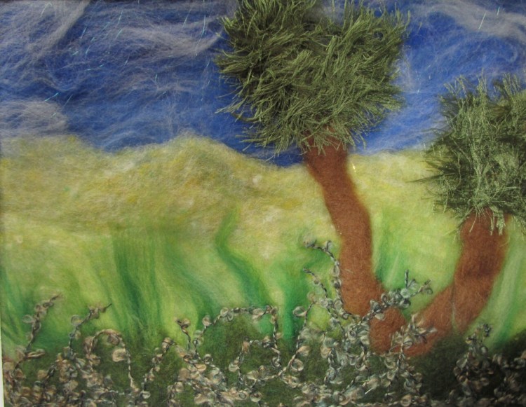 The Searsport artist has been a fiber/mixed media artist for more than 25 years specializing in creating artwork which pleases the eye and craves to be touched. The inspiration for her work focuses on the textural qualities of manmade and natural fibers which she incorporates into her artwork.