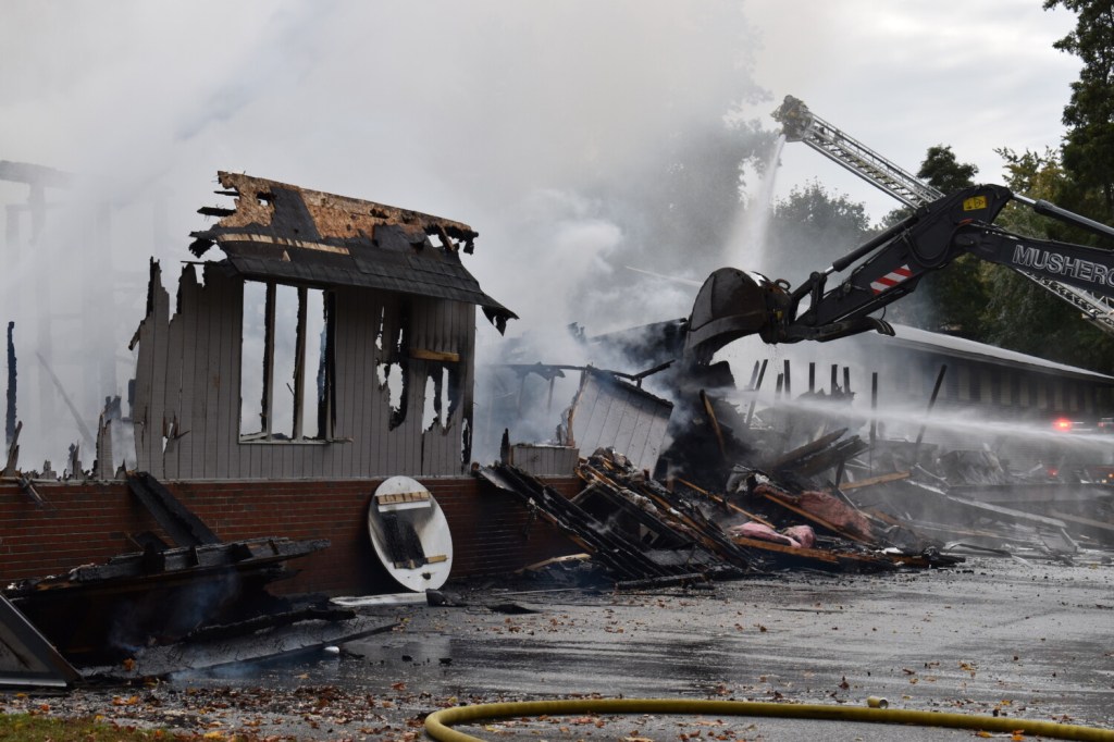 Rodriguez said that the main building was destroyed and that minor damage occurred in the rear building. As the afternoon progressed, crews worked to salvage and overhaul the scene as they put out hotspots. Crews struggled to douse flames in one area after chemicals apparently continued to fuel flames.