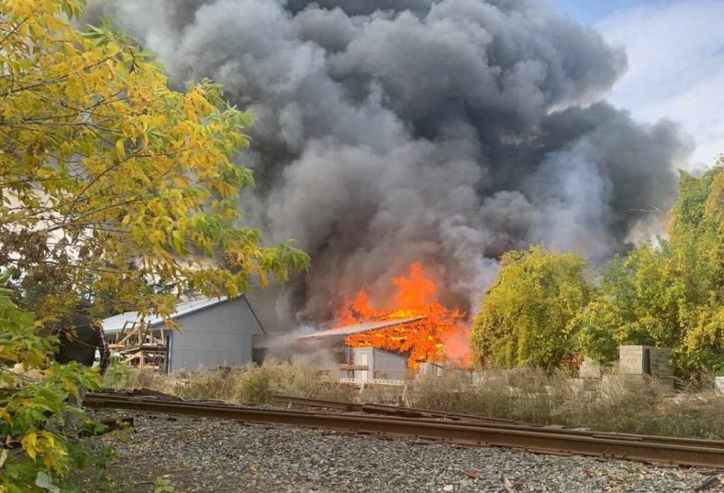 The McCormack Building Supply facility, at 8 Lithgow St., was engulfed in flames around noon Friday as flames and black smoke billowed into the air. Winslow fire Chief Ronnie Rodriguez said that no injuries were reported and all staff members had been accounted for.