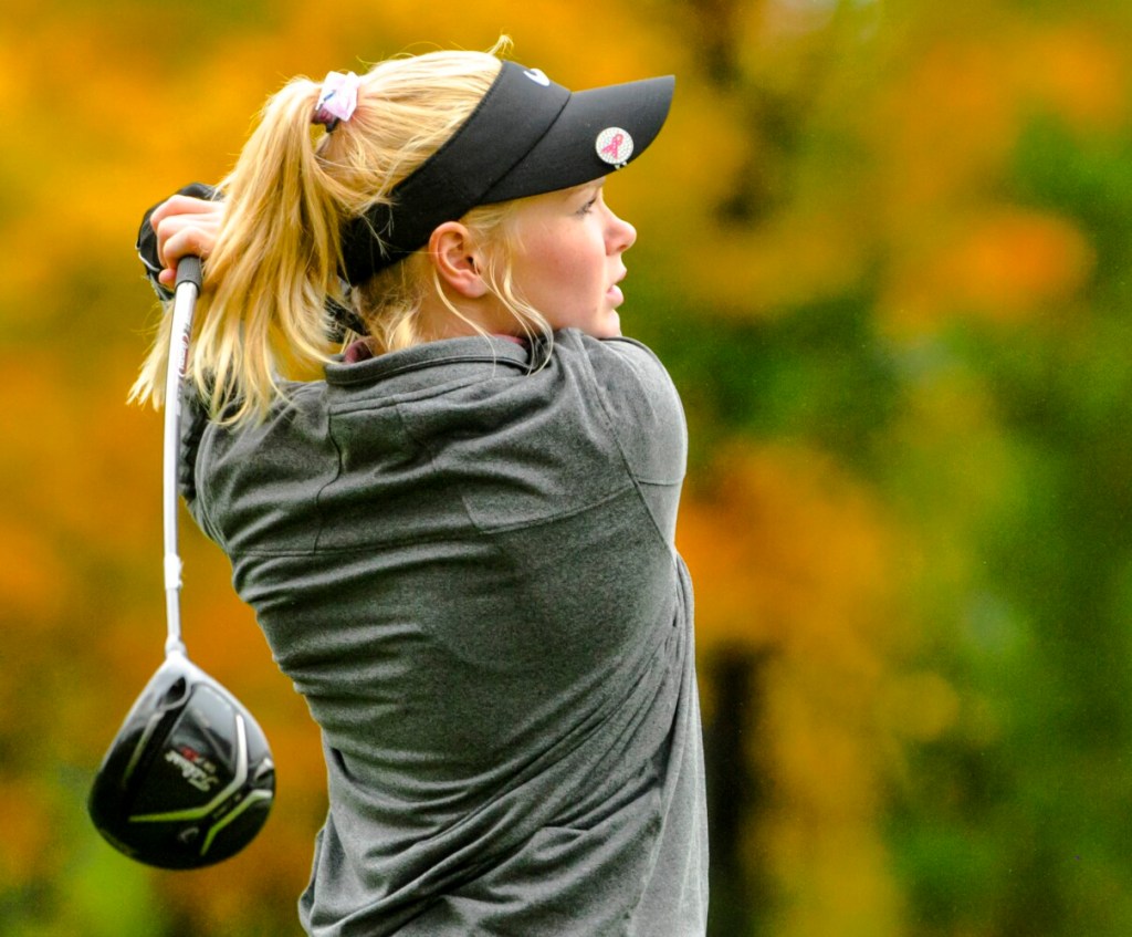 In the girls’ division, it was a battle between teammates, who both started their round on the back nine. Dutil, a junior, shot an even par-36 with a birdie on No. 12 — hitting a 9-iron to within 3 feet. She scored a 39 on the front nine.