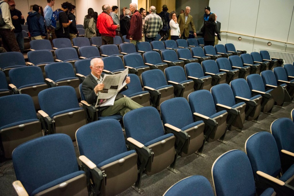 There were at least two security guards and a sheriff’s deputy on duty at the event, which nearly filled the 180-seat auditorium.