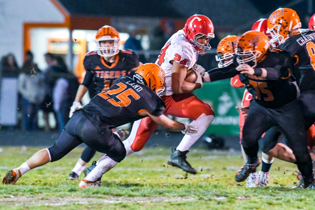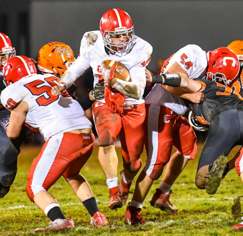 There were no other points in the half, but big plays kept coming. Blaise Tripp returned the following kickoff 88 yards to the Cony 5, but the Rams jumped on a Sean Michaud fumble on the Tigers’ next play from scrimmage. Three drives later, Michaud turned a screen pass into a 56-yard gain to the Cony 26. Nine seconds remained, but a pair of Noah Reed passes fell incomplete to preserve the one-point advantage.