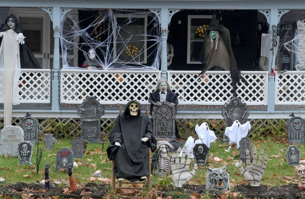 As ghosts and ghouls prepare to roam central Maine streets on Halloween, inflatable decorations, mock graveyards and animatronic villains are haunting the lawns of numerous homes.