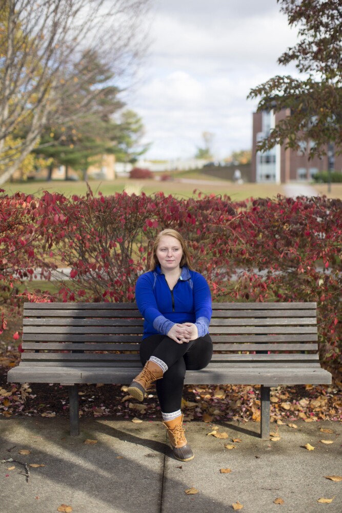 Mariah Knight poses for a portrait last month on the campus of Saint Joseph’s College of Maine in Standish, where she is a senior studying criminal justice. Knight was put into foster care as a young teen, and her goal is to someday open up her own nonprofit to help kids in foster care. Brianna Soukup/Staff Photographer