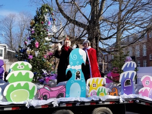 The Franklin County Chamber of Commerce float included Clyde Ross as Chester Greenwood and Michaela Carney as Isabel Greenwood.