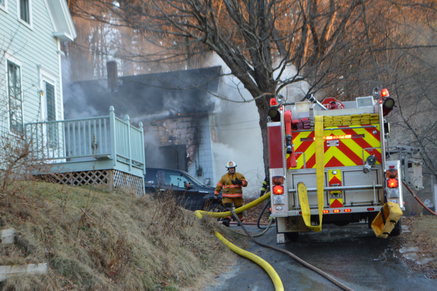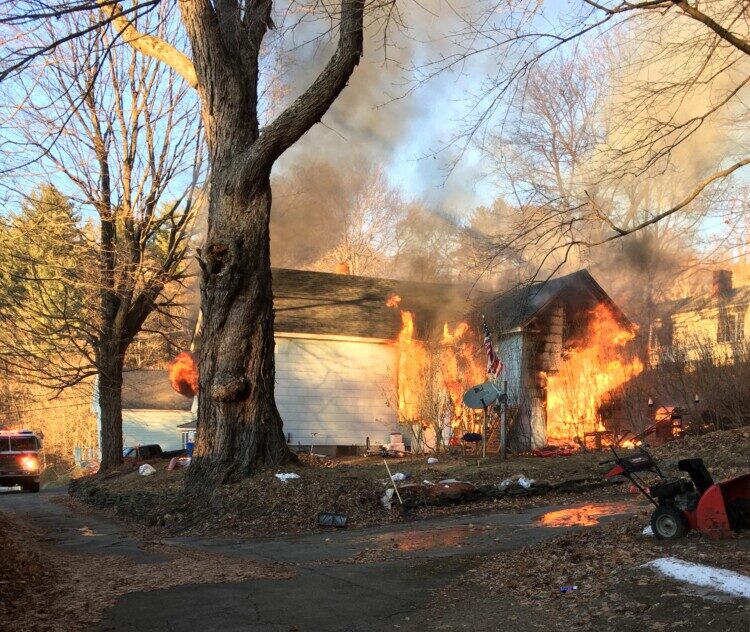 About 35 firefighters from Livermore Falls, Jay, Livermore, Fayette, Wilton and Farmington responded to the 3:15 call off upper Depot Street. Water from the hoses froze on the roads.