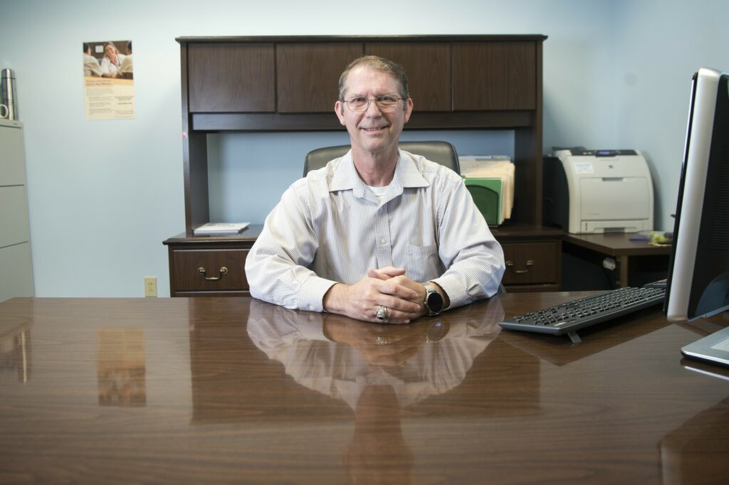 China Town Manager Dennis Heath, at his desk at the China town office in August 2018. Morning Sentinel file photo by Michael G. Seamans