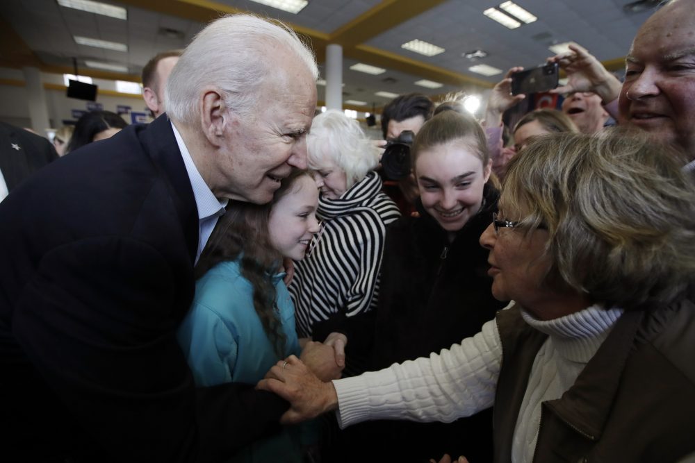 Democratic presidential candidate former Vice President Joe Biden greets people in the audience during a campaign event Sunday in Dubuque, Iowa. Marcio Jose Sanchez/Associated Press
