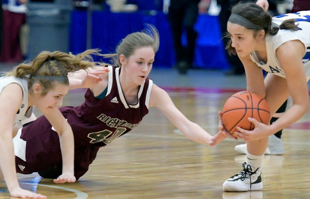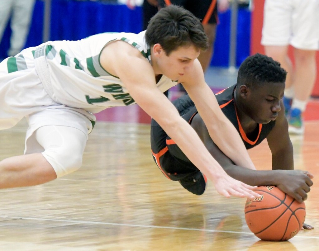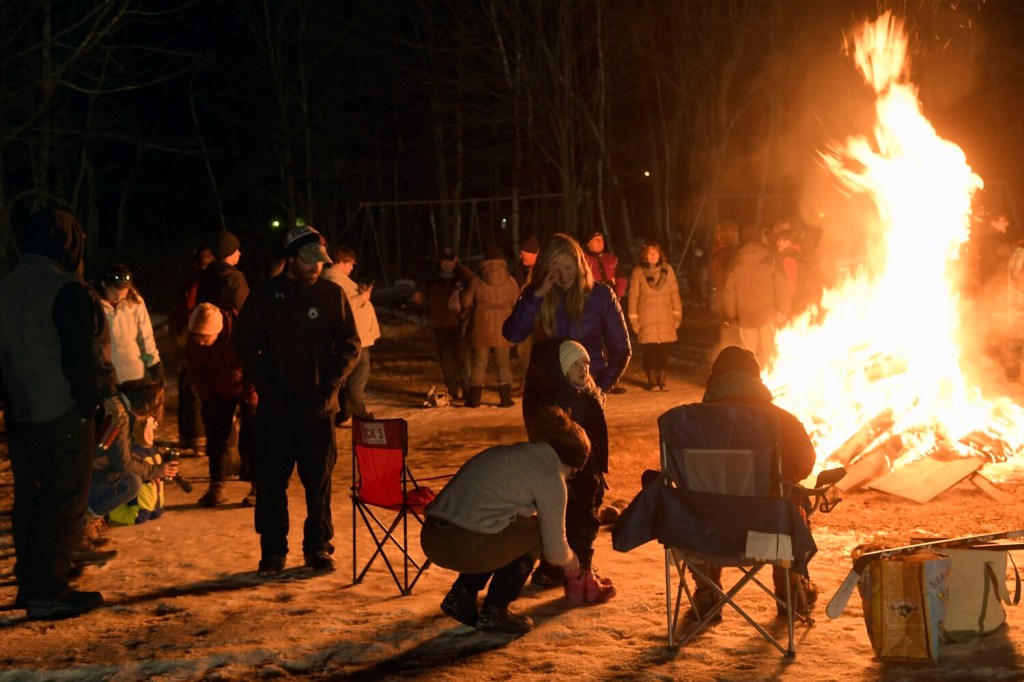 Snowmobiler Derick Sack flies a snowmobile over a road while leaving a trail near his home in Pittsfield on Sunday. Morning Sentinel photo by Rich Abrahamson