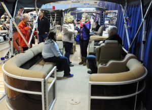 At the Bangor Boat Show, set for March 20-22, pontoon boats have been a top seller in recent years. Joe Phelan/Kennebec Journal
