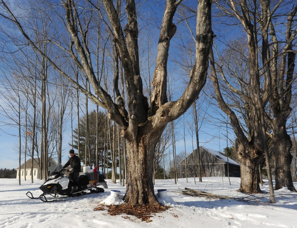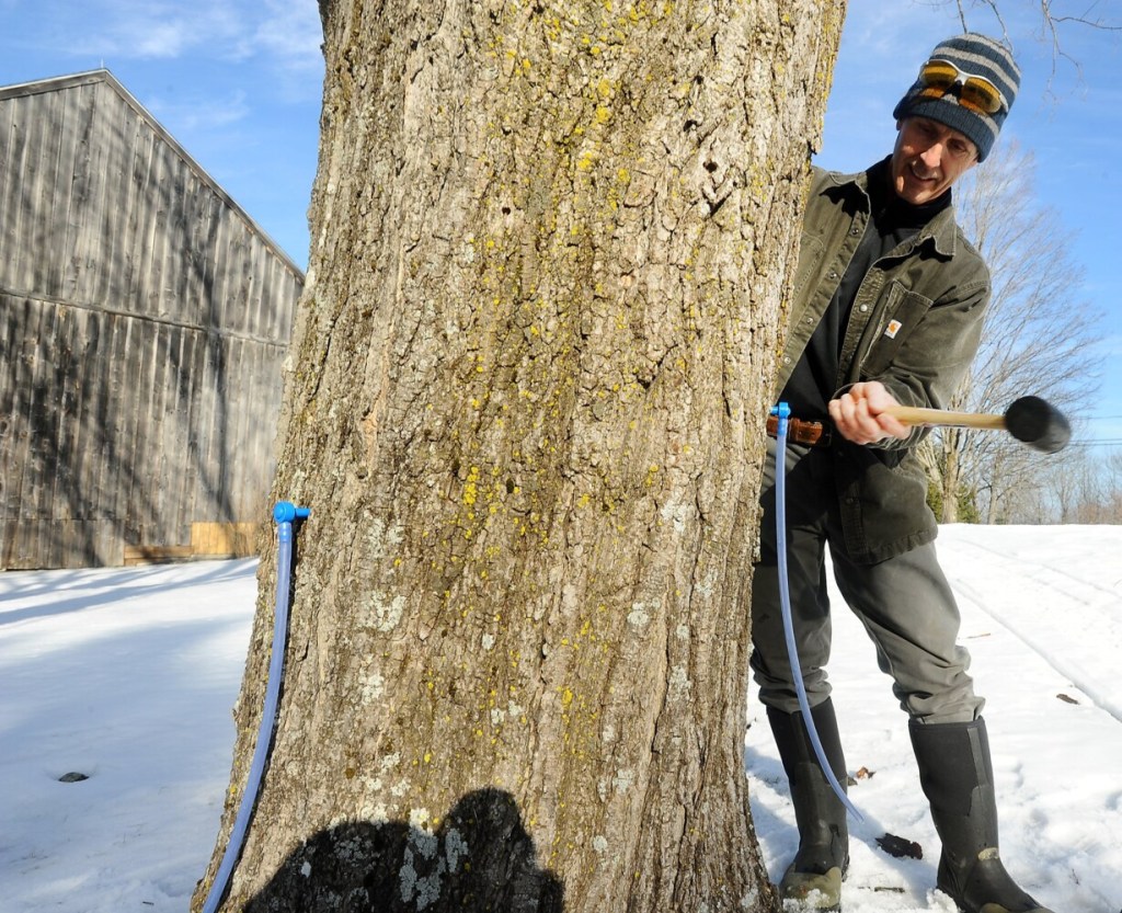 Jim and Andrea Mathieu were tapping the maple trees Monday on their Sidney property after a succession of warm days and cold nights had the sap running. Jim Mathieu said they tap between 100 and 200 trees on their property, where the buildings and some of the trees date back to the mid-1800s.