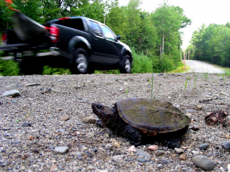 Maine is home to seven species of turtles, all of which live in marshy wetlands and ponds. During the summer, females move to warm, sandy areas to lay their eggs, forcing them to cross roadways.