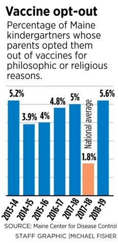 Supporters of the new law that removed nonmedical exemptions say only three states in the country have higher rates than Maine of parents opting out of childhood vaccinations, which is creating a situation where community immunity is jeopardized.
