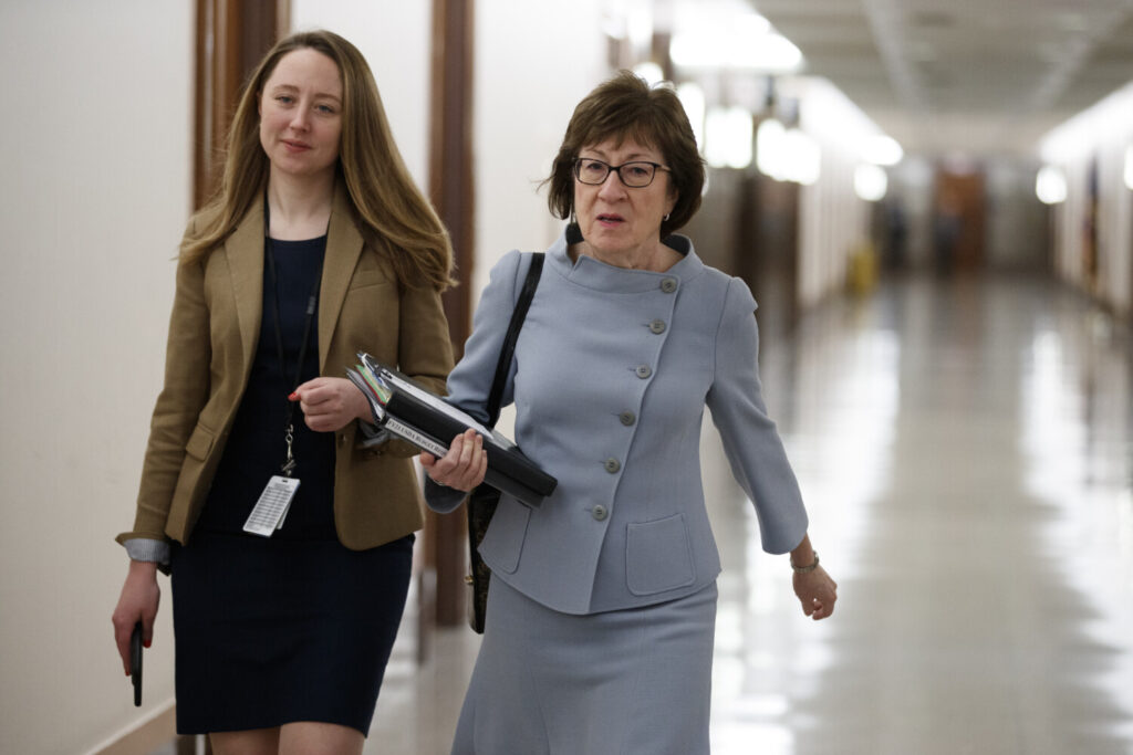 Sen. Susan Collins, R-Maine, arrives for a briefing on the coronavirus outbreak Thursday on Capitol Hill. Carolyn Kaster/Associated Press