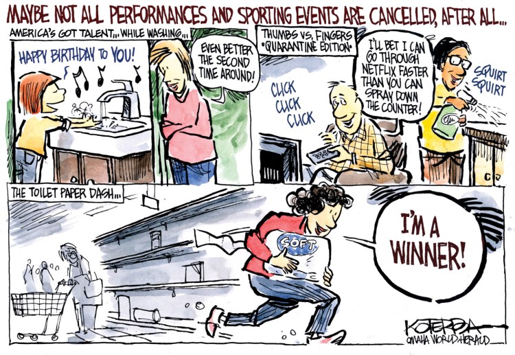 Opinion Today’s editorial cartoon Posted March 18, 2020 1 min read Font size + Gift article You are able to gift 5 more articles this month.Anyone can access the link you share with no account required. Learn more. Email Copy Link Email address Send! Article link sent! An error has occurred. Please try again. With a Kennebec Journal and Morning Sentinel subscription, you can gift 5 articles each month.It looks like you do not have any active subscriptions. To get one, go to the subscriptions page. Subscribe Today With a Kennebec Journal and Morning Sentinel subscription, you can gift 5 articles each month. Subscribe Today Sign In Loading.... Share Facebook Reddit Linkedin Email Copy Link Print March 18, 2020 Copy the Story Link Send questions/comments to the editors. « Previous Bill Nemitz: In this time of crisis, not all Maine employers do the right thing by their workers Next » George Smith: Wonderful memories on Moosehead filed under: cartoon Related Stories Latest Articles